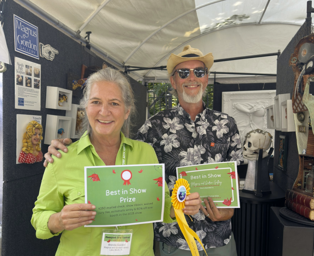 Magnus & Gordon Gallery travels across the country exhibiting and selling in juried shows like Rittenhouse Square in Philadelphia, Bethesda Row in Bethesda Maryland, Images in New Smyrna Beach Florida, Tephra in Reston Virginia, Winter Park in Florida, and Kentuck Festival of the Arts in Tuscaloosa Alabama, just to mention a few.